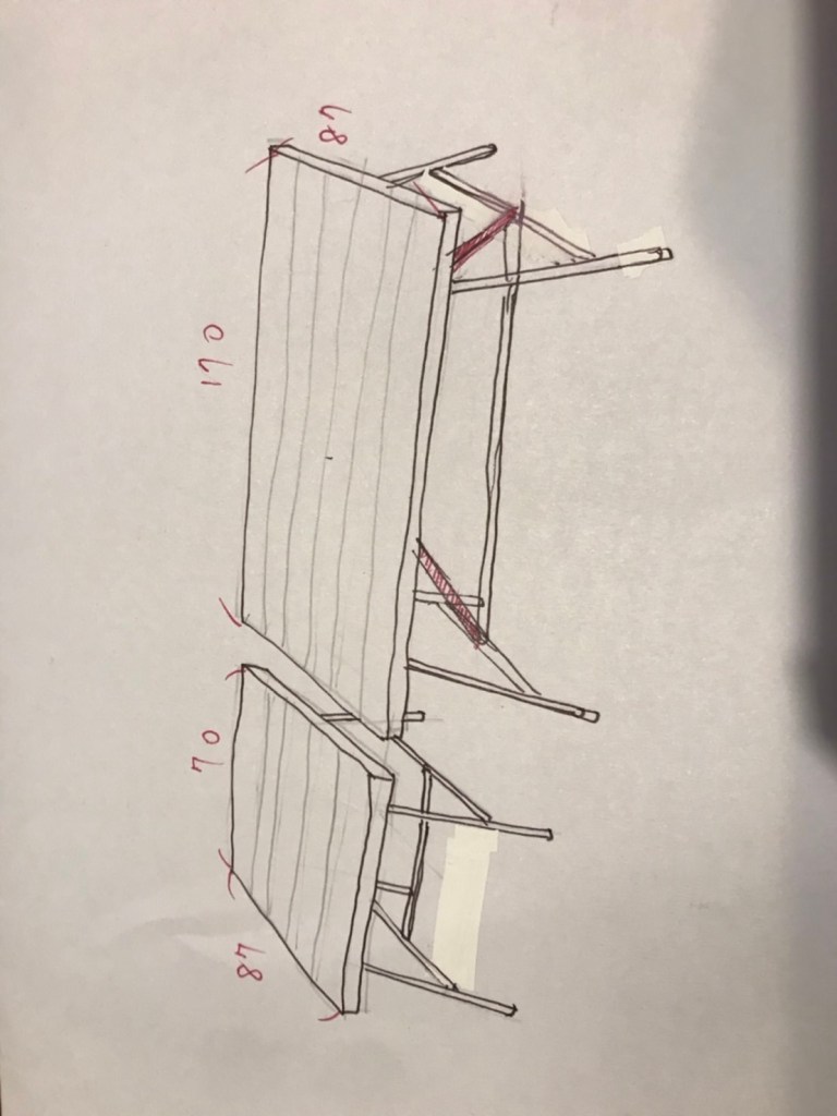 要丈量出第二階平台的位置,其實花了我好多的時間去意象,要考量的點有很多,譬如說放完沙發後剩下台階的寬度、沙發距離螢幕的舒適度、最後一排會不會被遮到、螢幕高度、訓練平台空間等等諸多因素,雖然看似簡單,但在腦中已經模擬無數次實驗與實用性測試了。